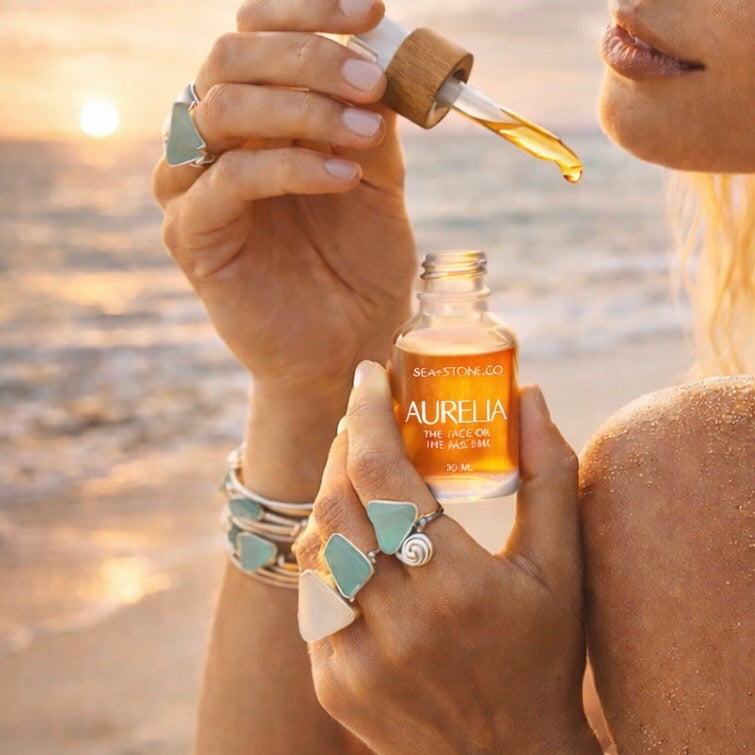 AURELIA Face Oil is SEA+STONE CO’s luxury, concentrated serum—the ultimate coastal-luxe ritual for a long lasting glow.